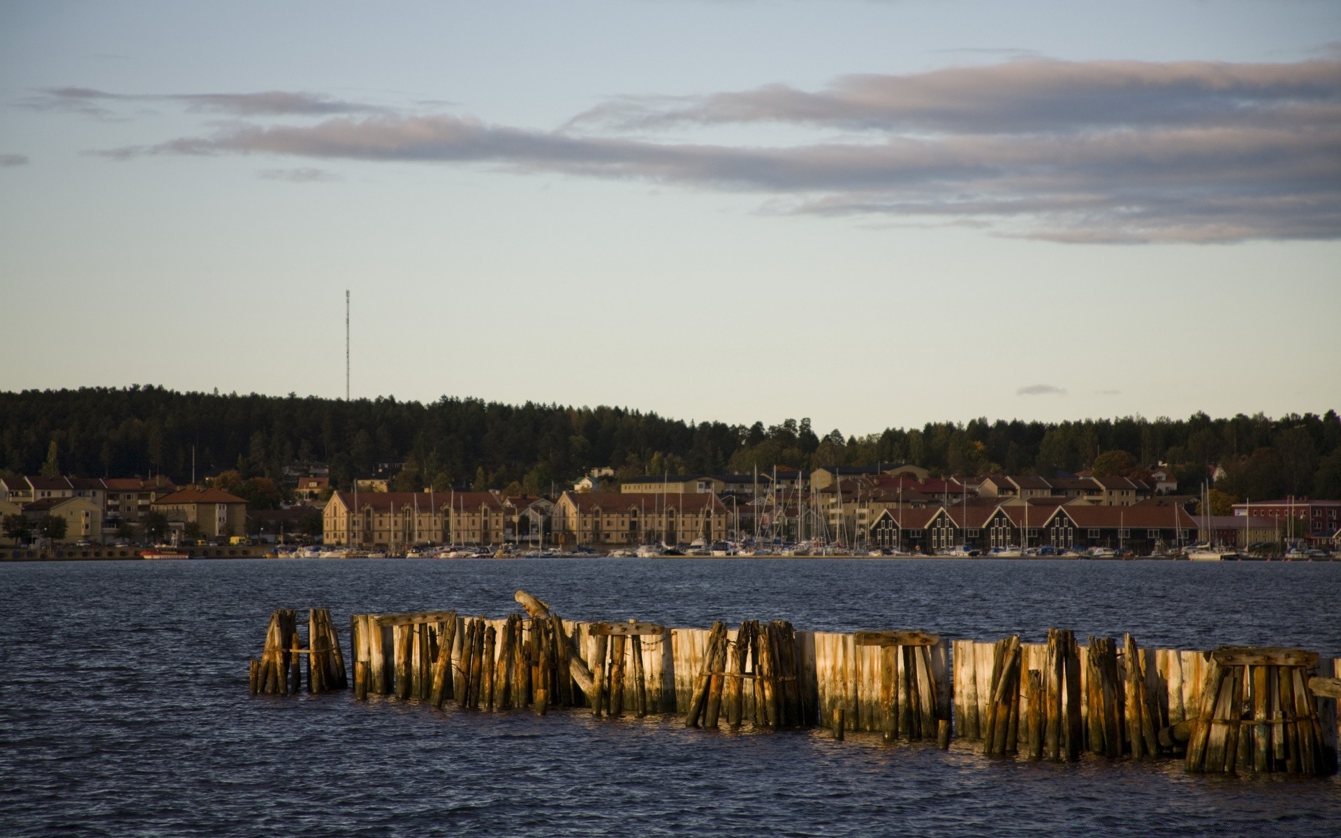 Das Schiff betritt den Hafen mit einem Leuchtturm