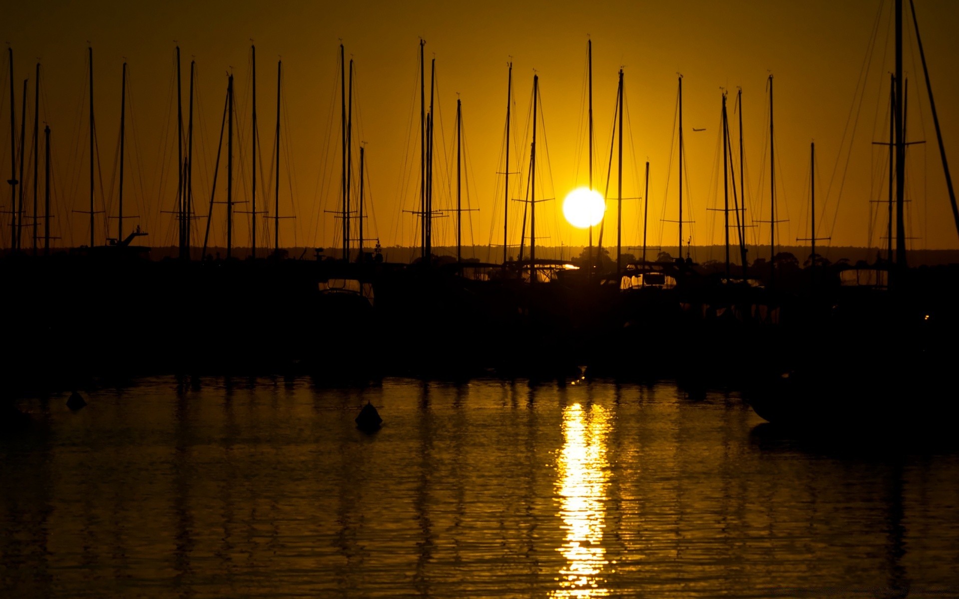 Ruhiger, ruhiger Hafen bei Sonnenuntergang