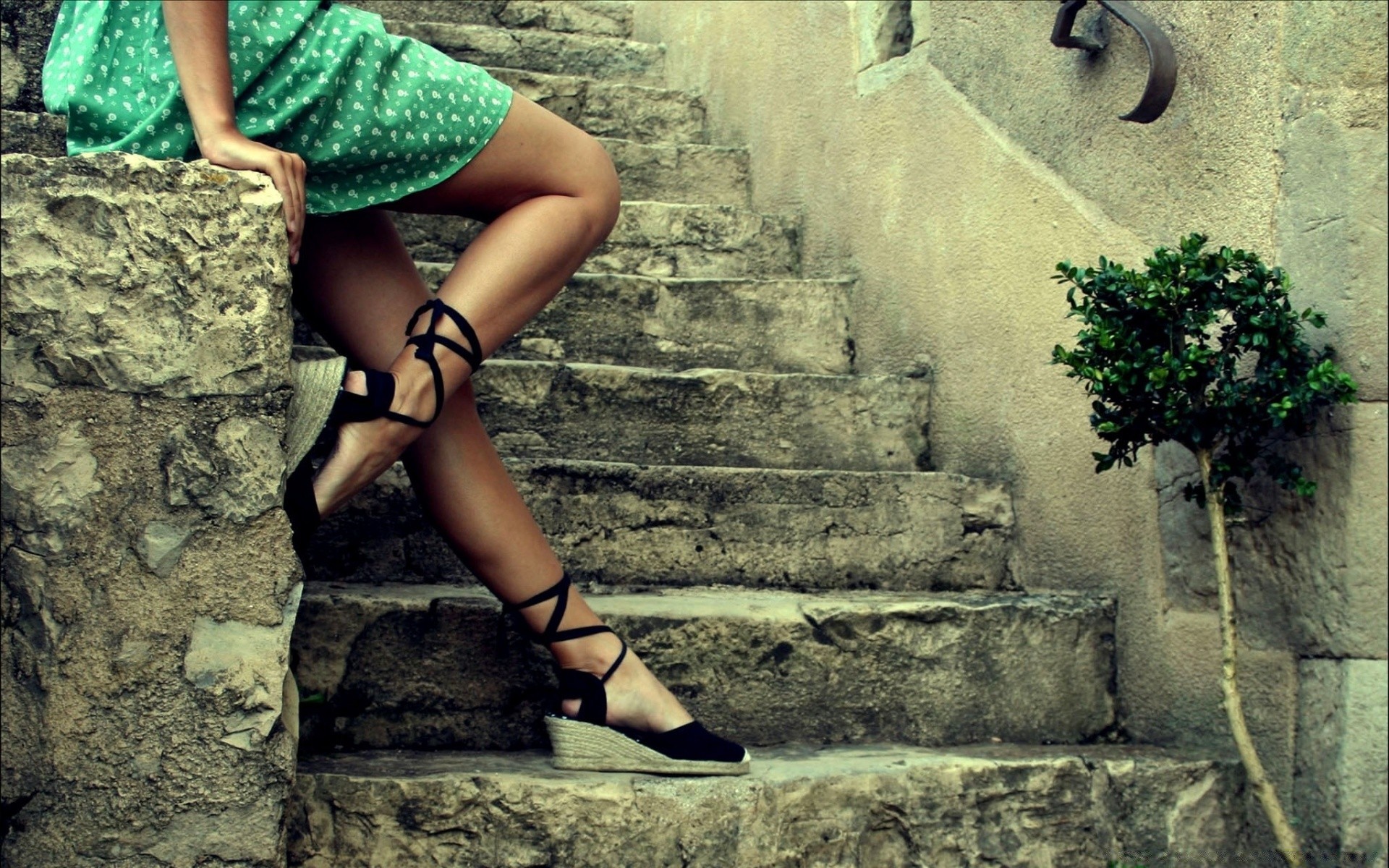 Weibliche Beine auf einer Steintreppe