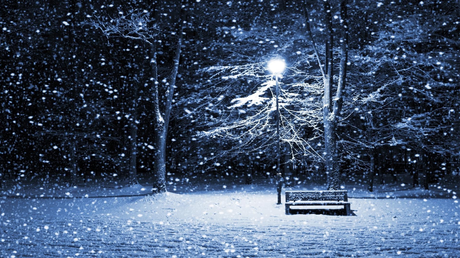 Ein verschneiter boulevard und das licht der laternen in der nachtEin verschneiter Boulevard und das Licht der Laternen in der Nacht