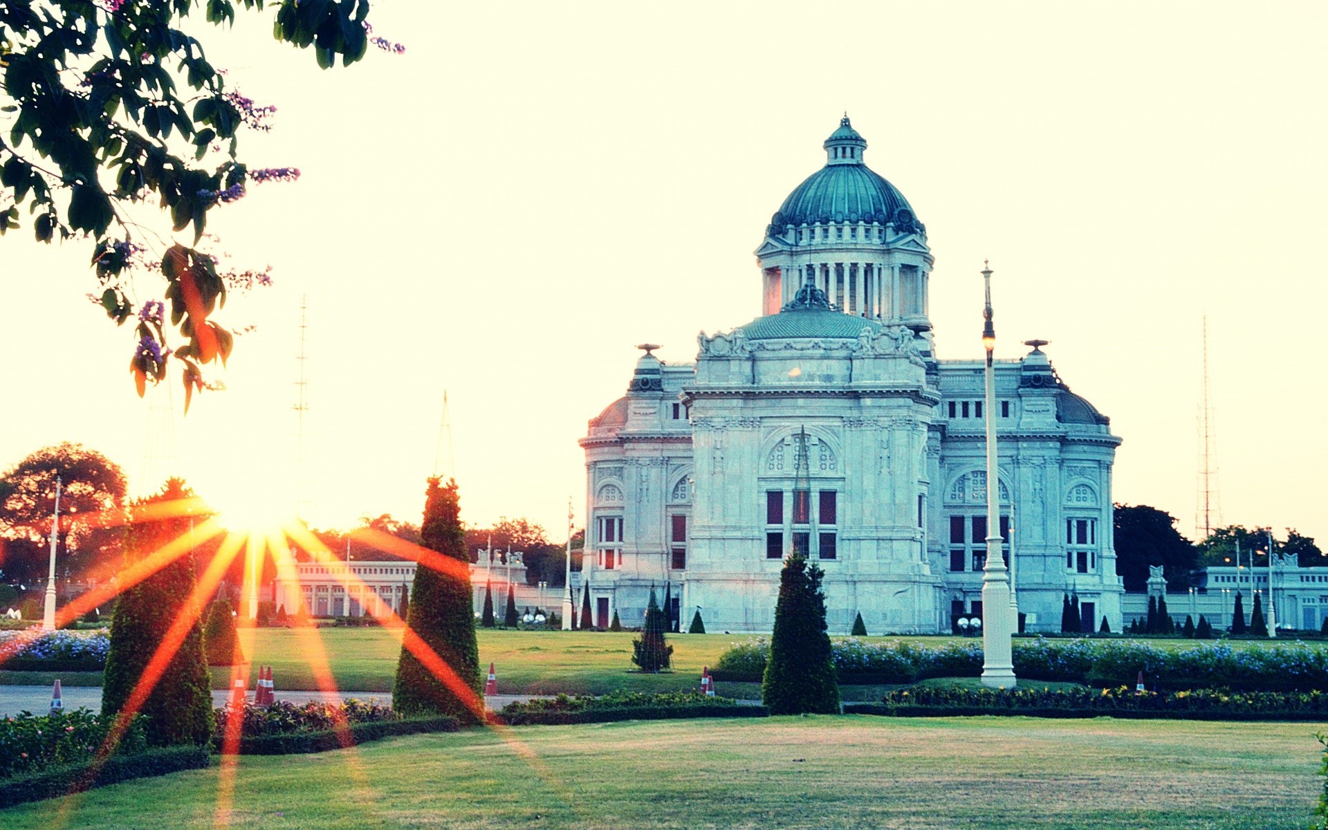 Stadtarchitektur. Ein großes Haus. Dunkler Himmel