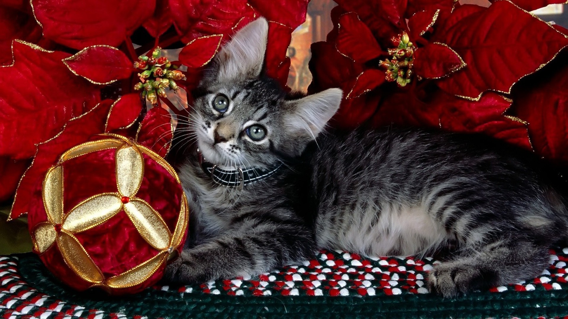 Welpe hat ein Weihnachtsgeschenk mitgebracht