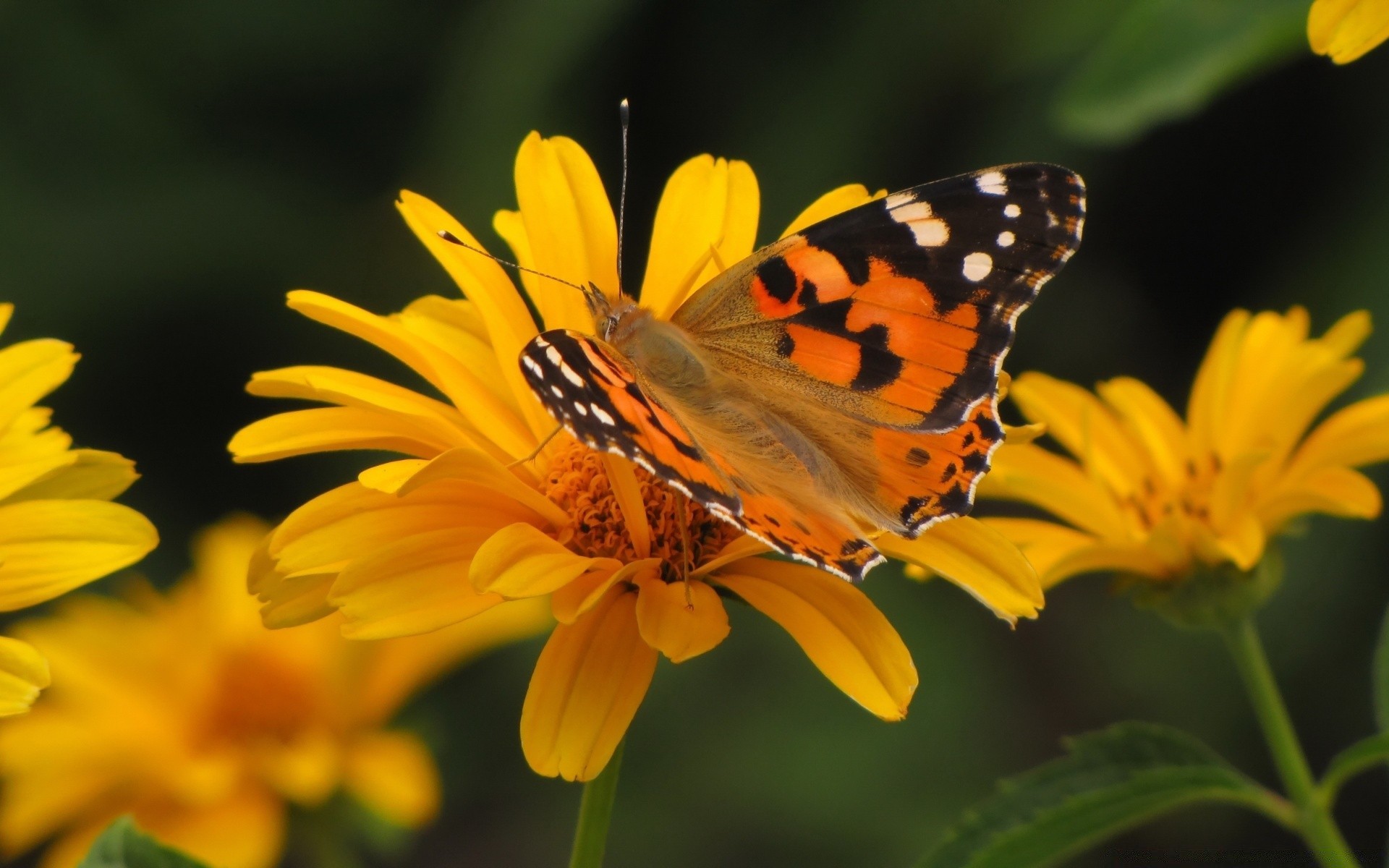 Helle Ringelblumenblüten auf einem dunklen, düsteren Hintergrund