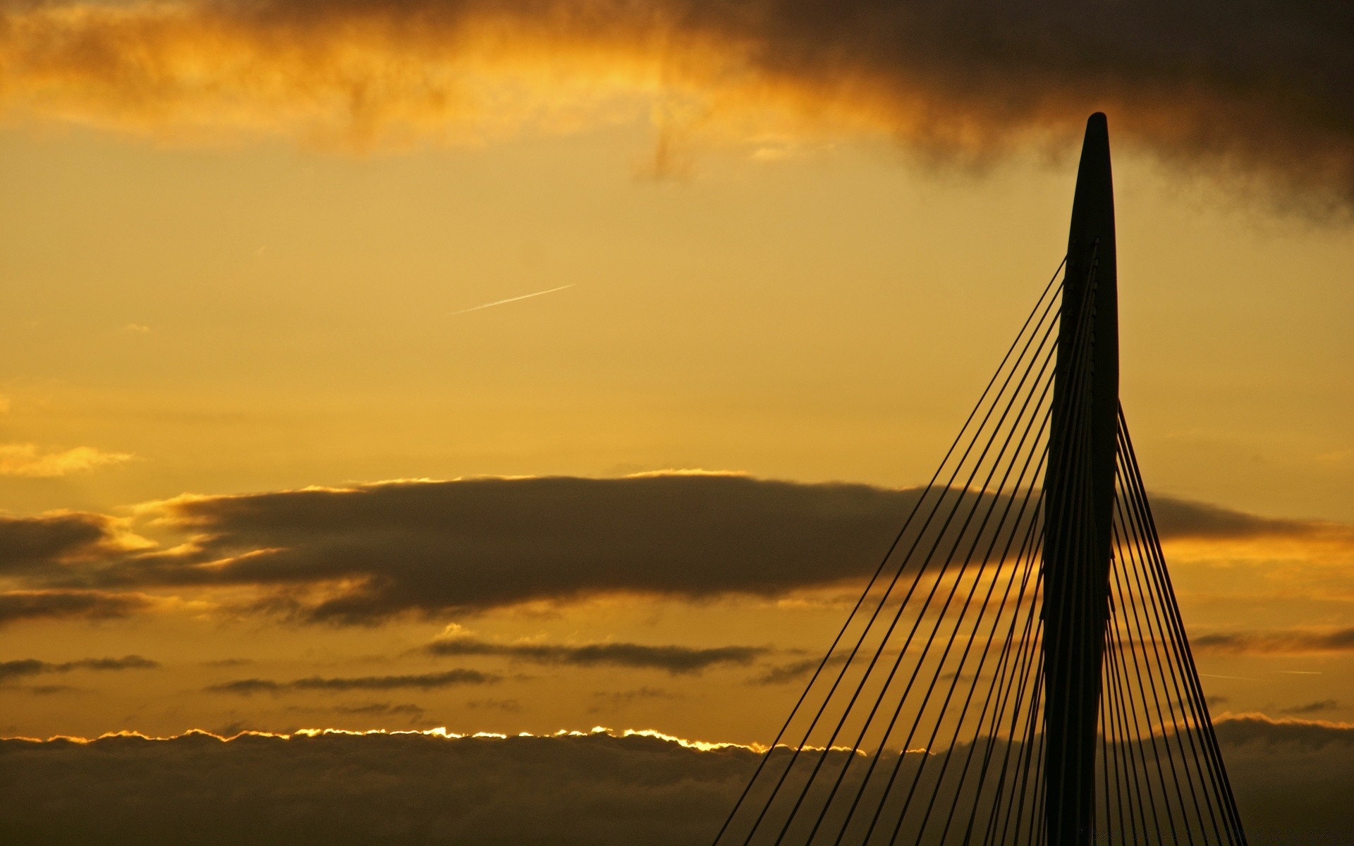 Helle Reflexion des Sonnenuntergangs und des Waldes auf dem Wasser