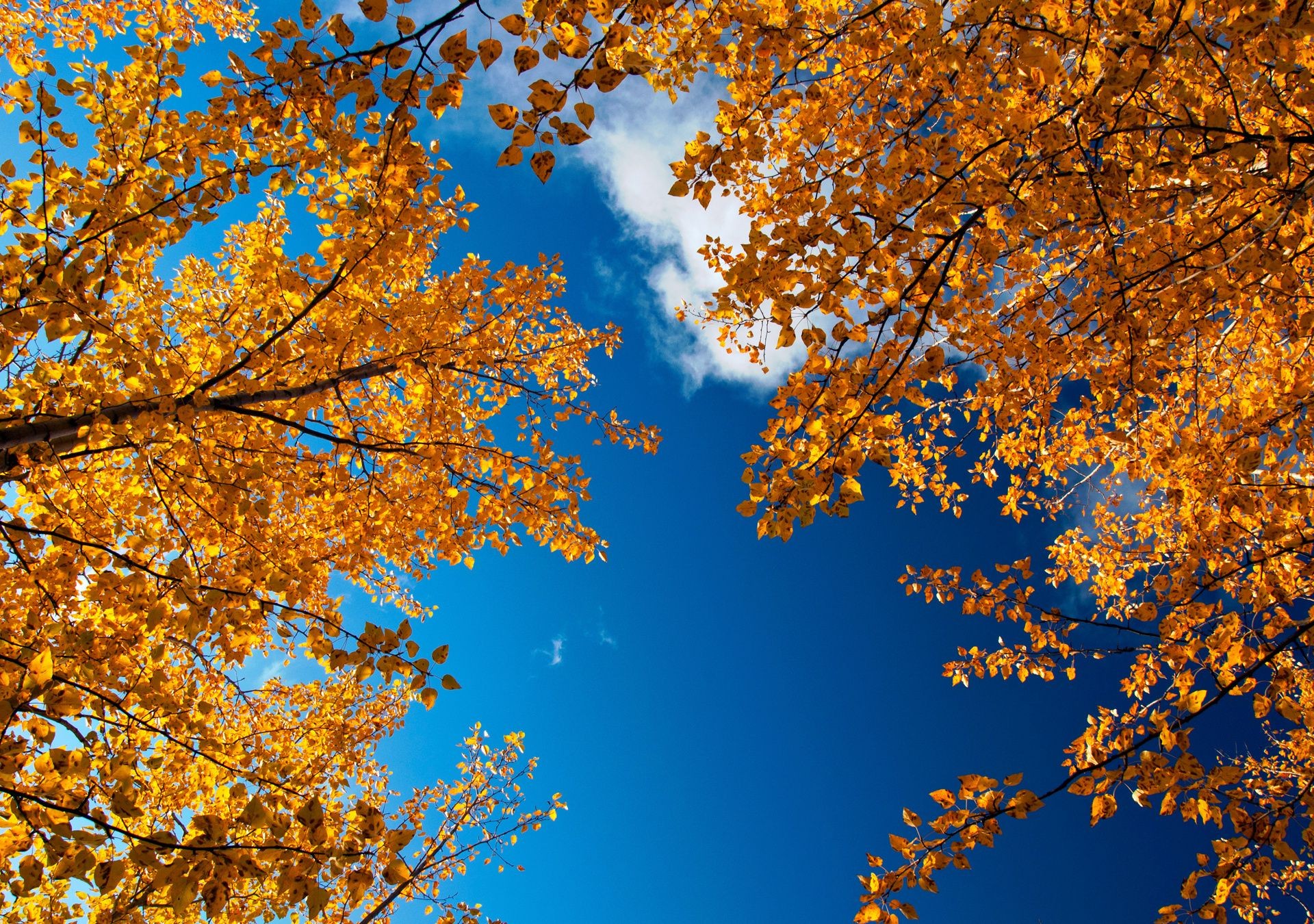 Herbst. Blauer Himmel . Gelbe Bäume