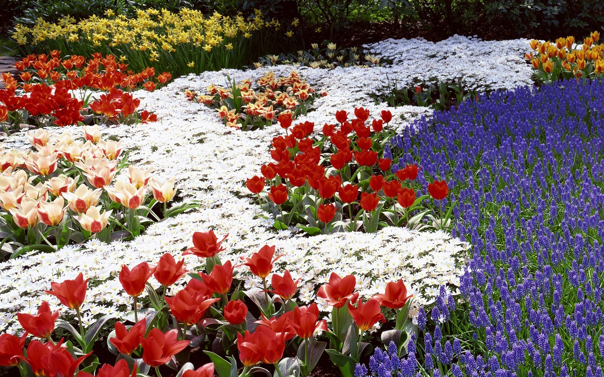 Eine vielzahl von frühlingsblühenden blumen in der naturEine Vielzahl von frühlingsblühenden Blumen in der Natur