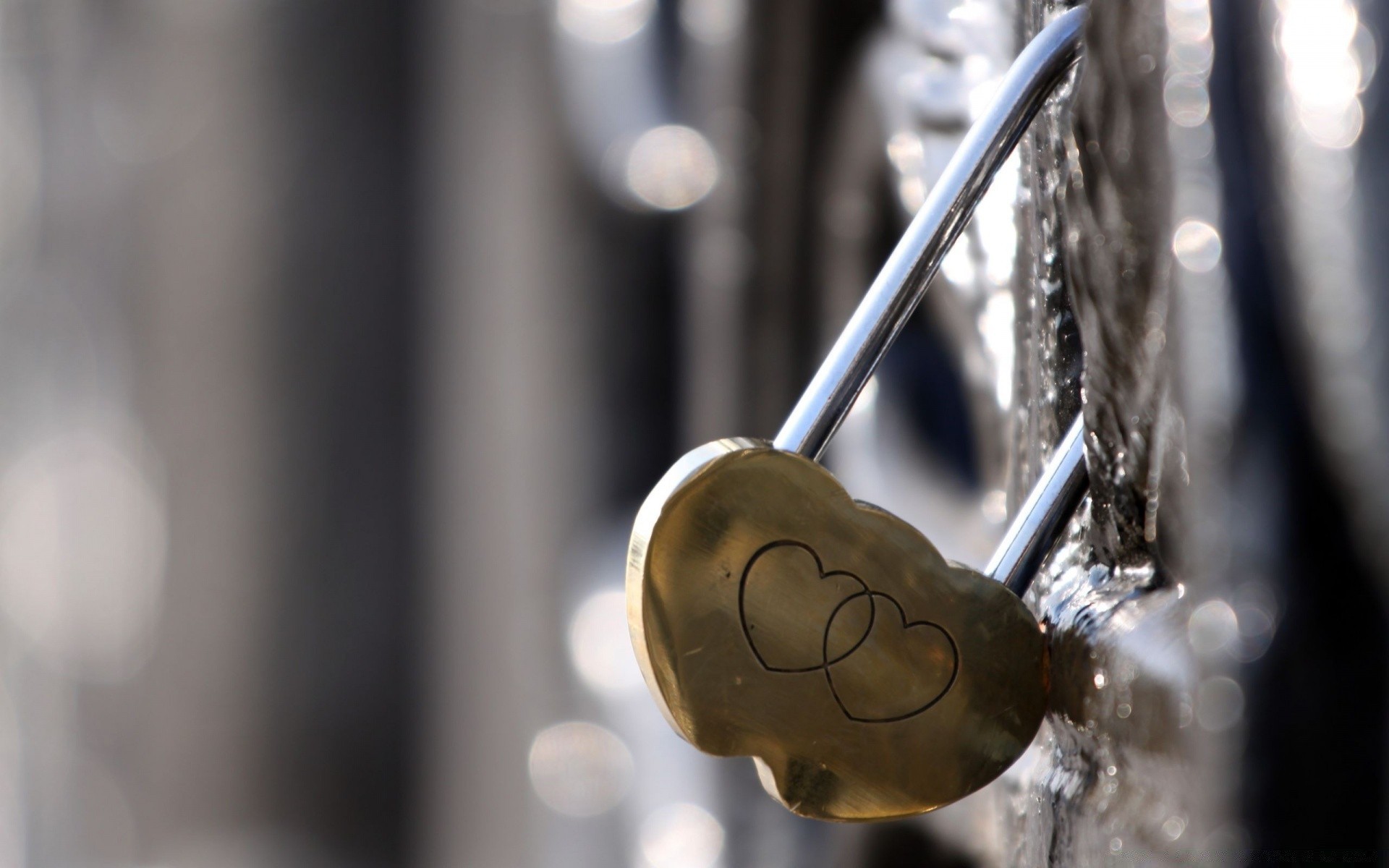 Ein Liebesschloss in Form von zwei verklebten Herzen