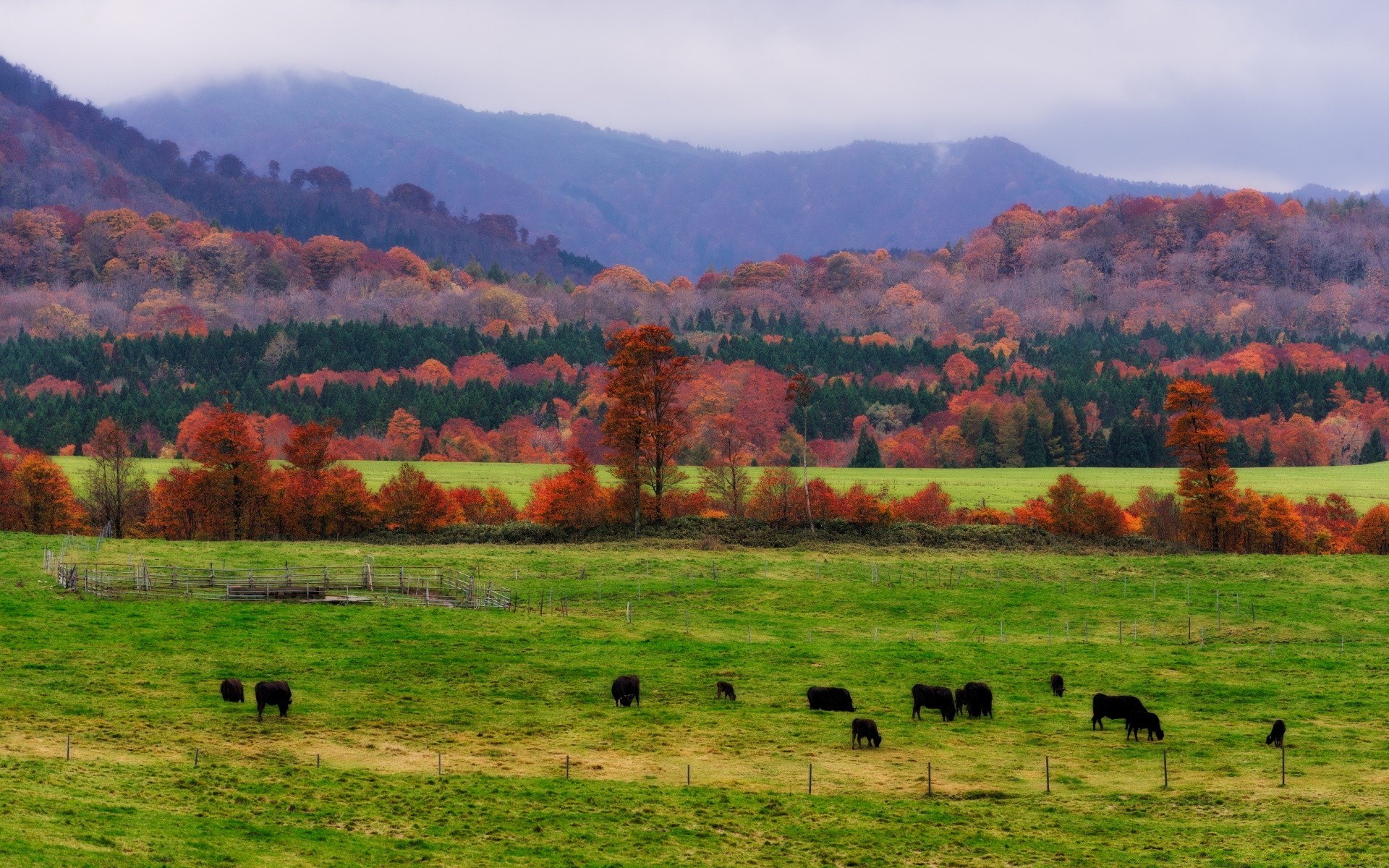 Schöne ländliche Landschaft mit Bergen und Herde