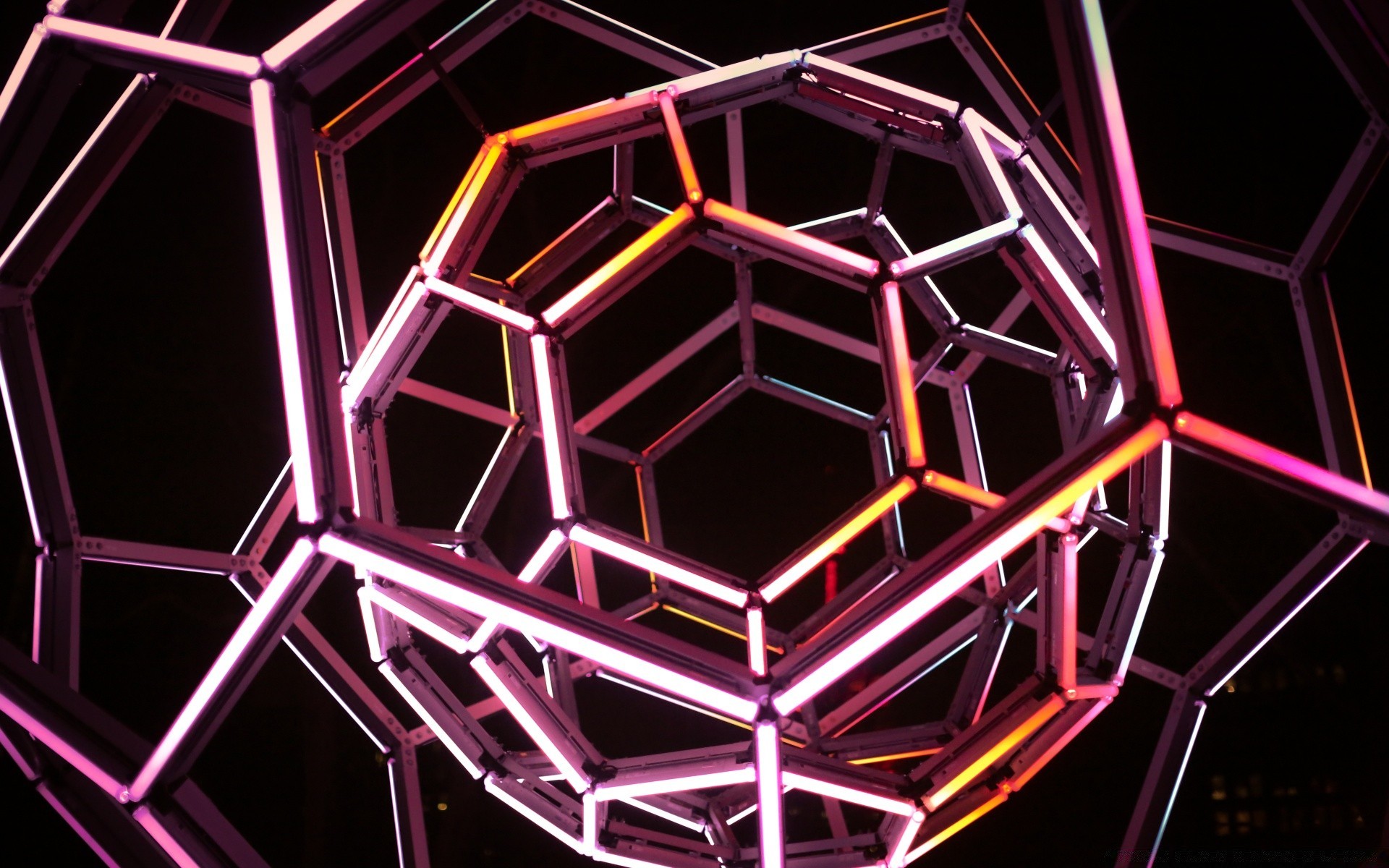 Dreidimensionale Sechsecke mit Neonbeleuchtung