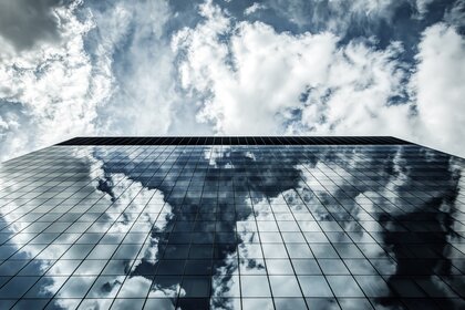 Der sonnenuntergang ertrinkt hinter einer reihe von wolkenkratzernDER SONNENUNTERGANG ERTRINKT HINTER EINER REIHE VON WOLKENKRATZERN