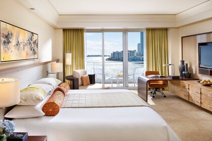 Schlafzimmer mit fenstern , die auf den fluss blickenSchlafzimmer mit Fenstern , die auf den Fluss blicken