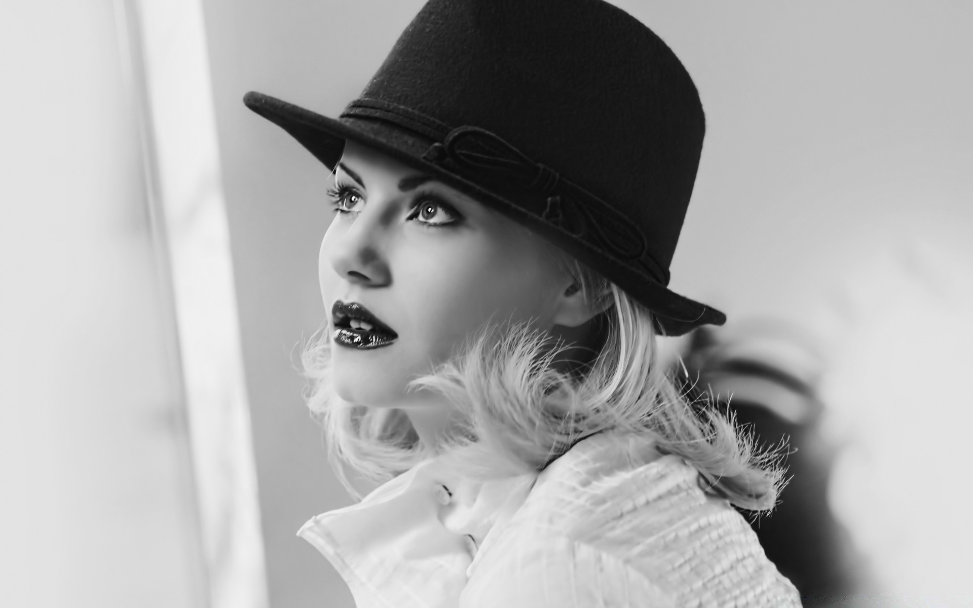 Ein verwirrtes Mädchen lächelt kokett in einem schönen Kleid