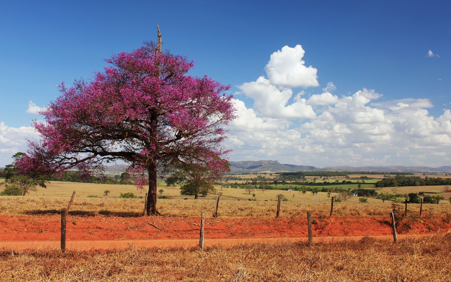 Schöne Landschaft. Schöner Himmel. Der Baum. Gras