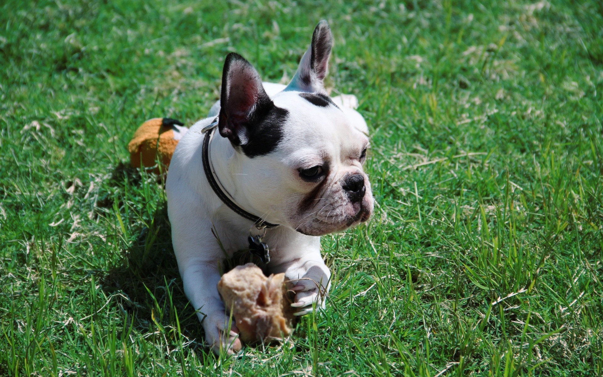 Welpe kühlt die Ohren unter einem Ventilator ab
