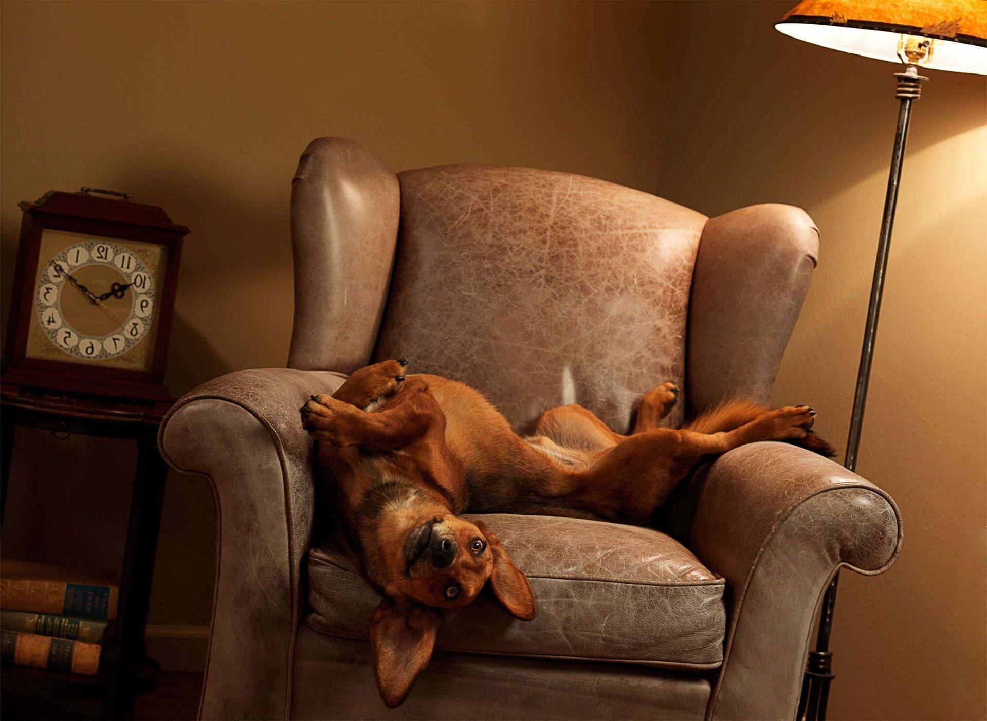 Entspannen Sie Ihren Hund auf dem Ledersofa