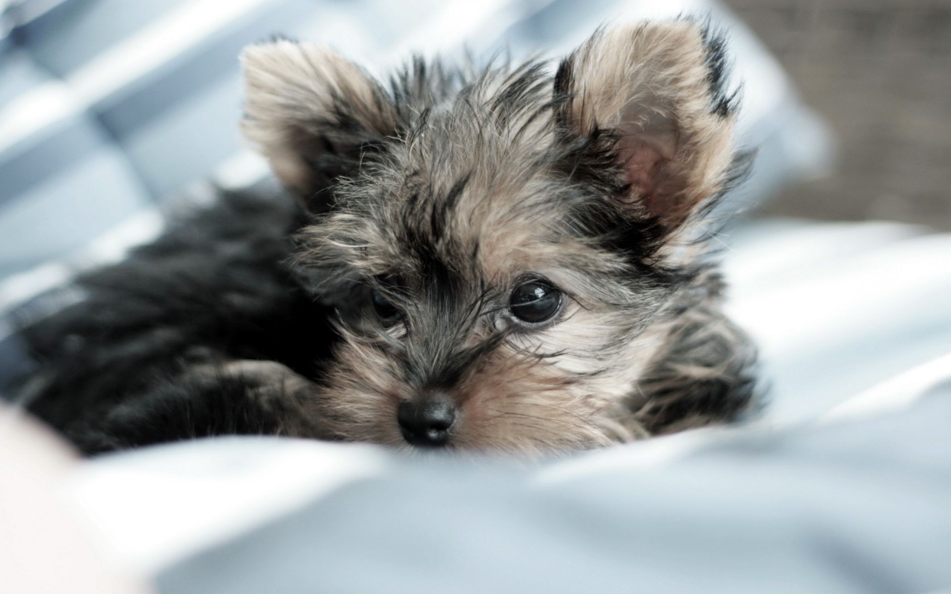 Der Hund liegt auf dem Rasen in der Natur und posiert