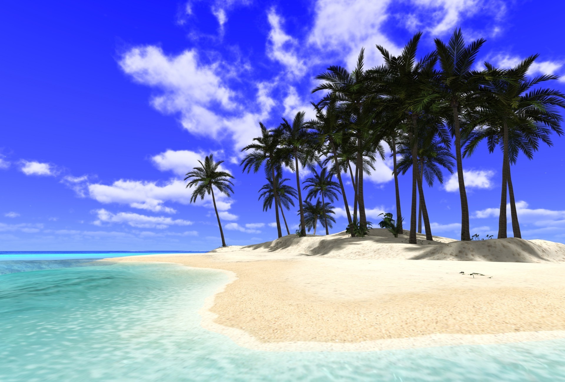 Palmen am Ufer vor dem Hintergrund einer Insel