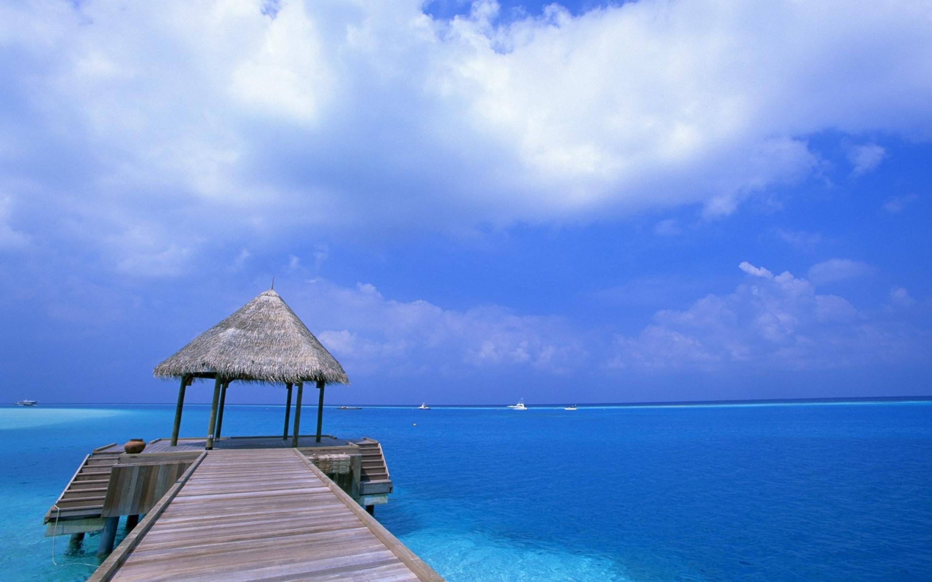 Die Zweige einer Palme öffnen den Blick auf den Ozean