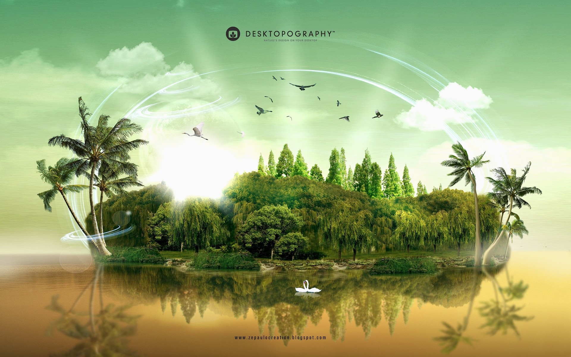 Fotobearbeitung der Natur im Sommer und des Wassers im Licht