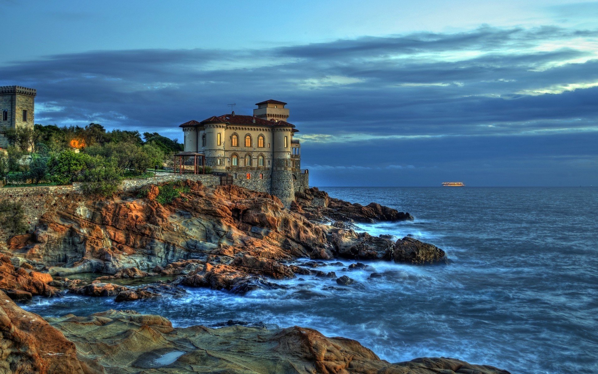 Nahaufnahme der rosa und orange Blüten eines Obstbaums im Frühjahr