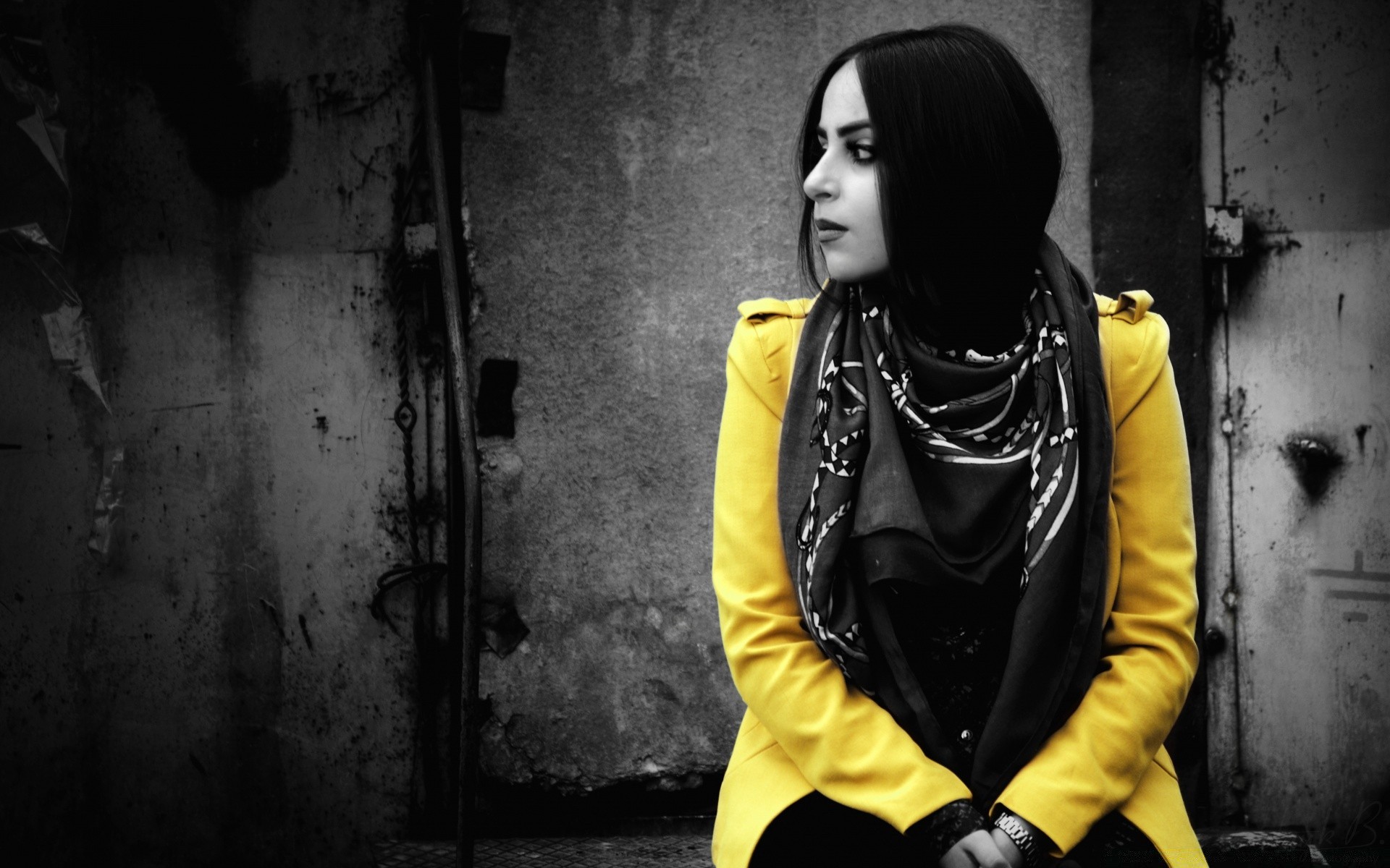 Porträt eines mädchens in einer hellen gelben jackePorträt eines Mädchens in einer hellen gelben Jacke