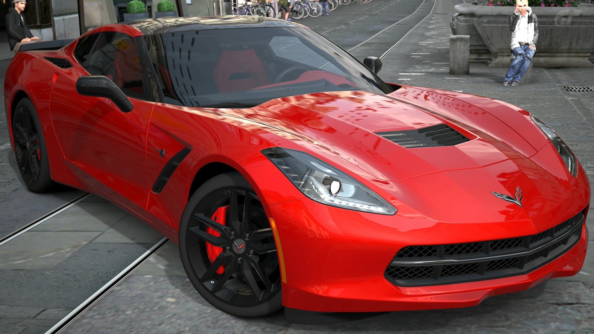 Hellgrünes Auto in der Stadt im Computerspiel gran turismo