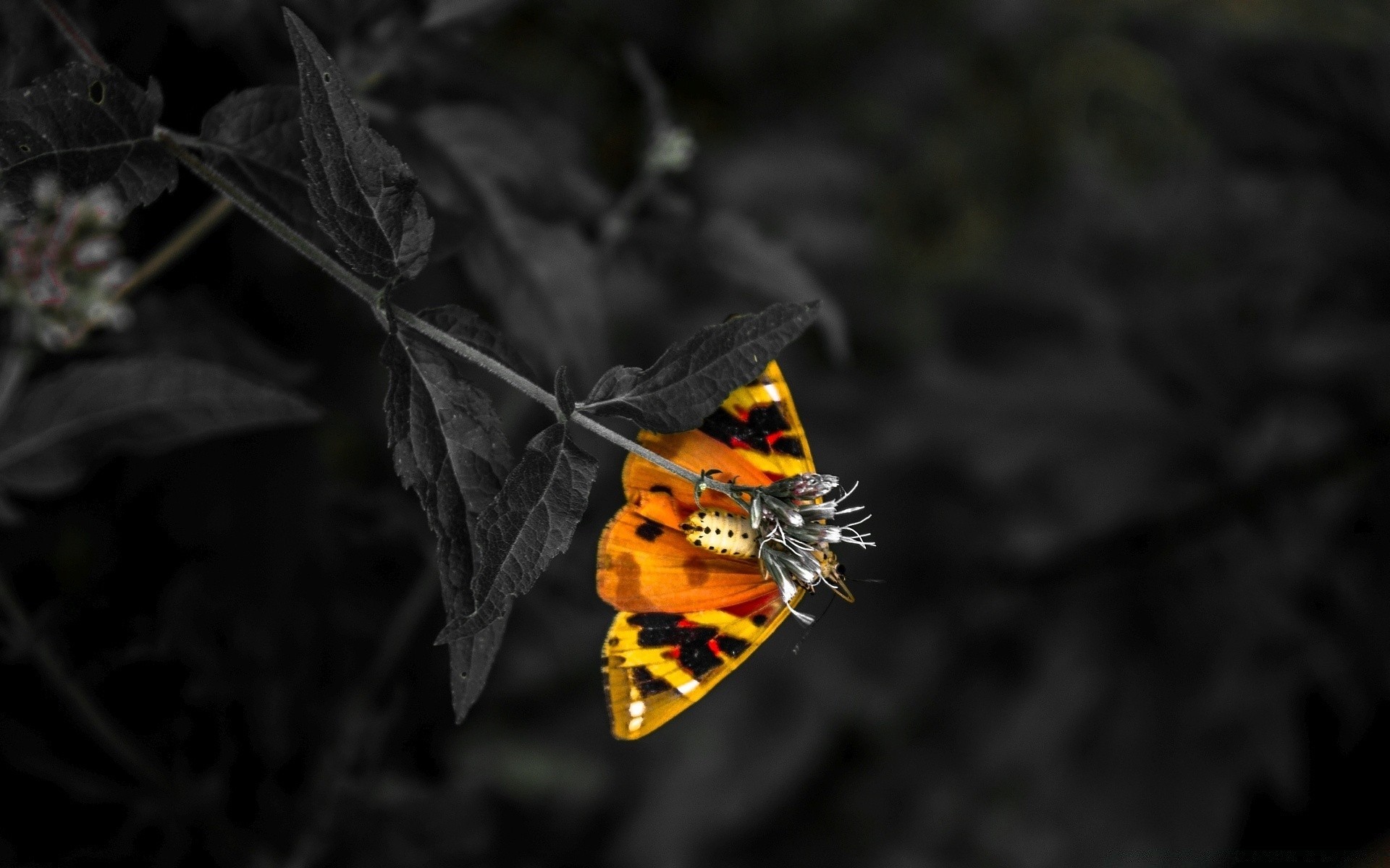 Ameise auf einem Blatt auf einem blauen Himmelshintergrund
