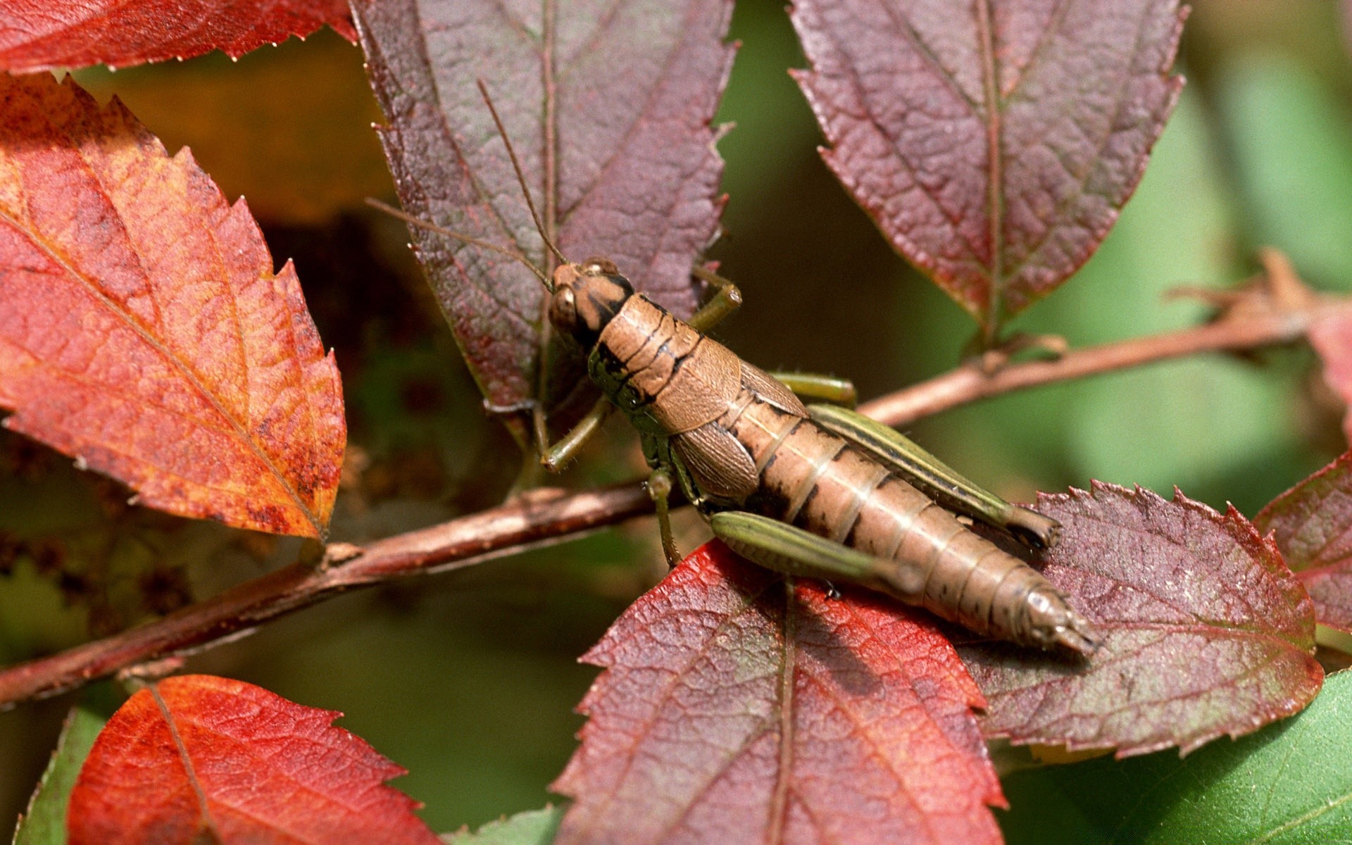 Eine rothaarige Libelle sitzt auf einem breiten Blatt