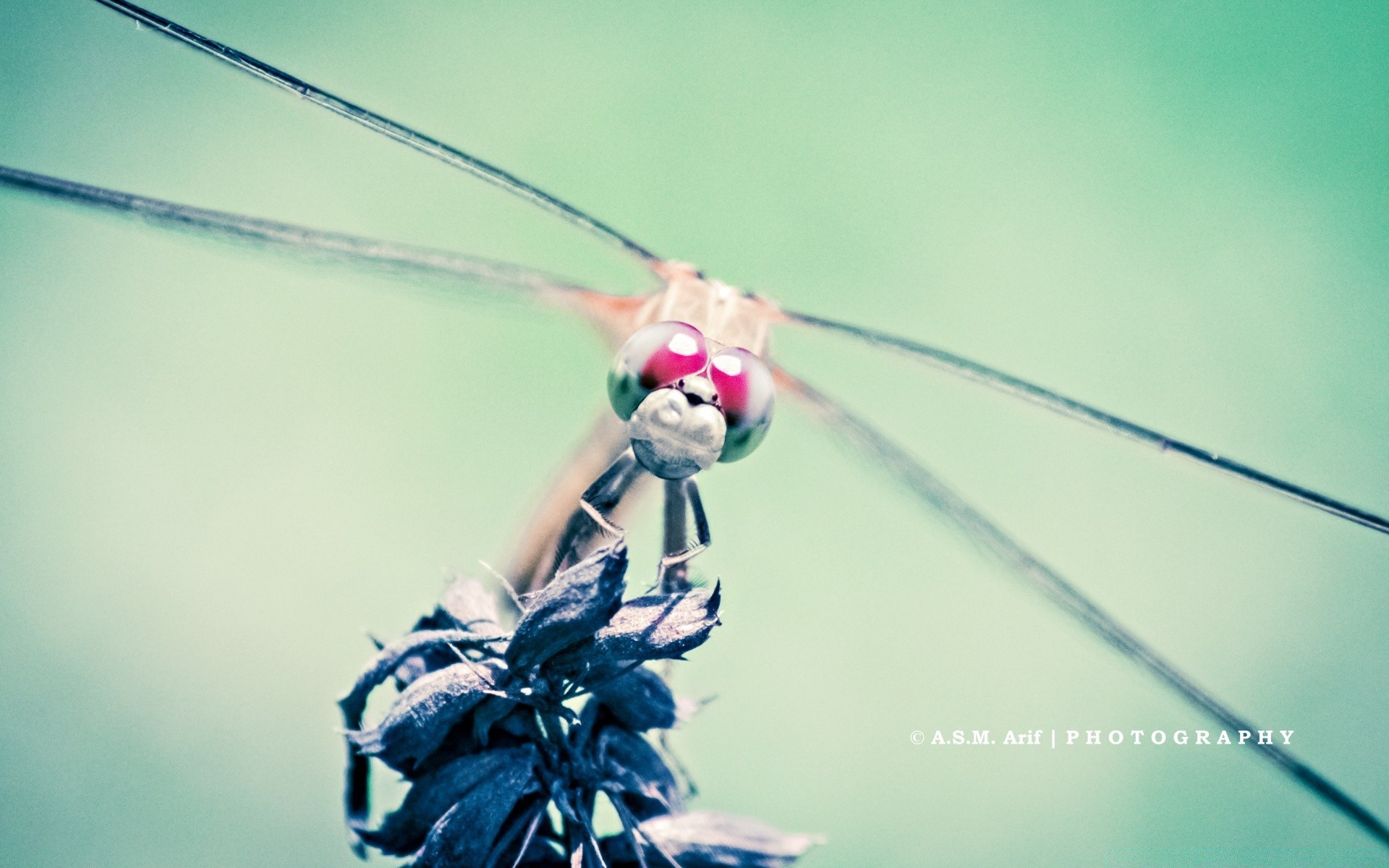 Die Libelle ist müde und bewegt sich auf einen Stumpf