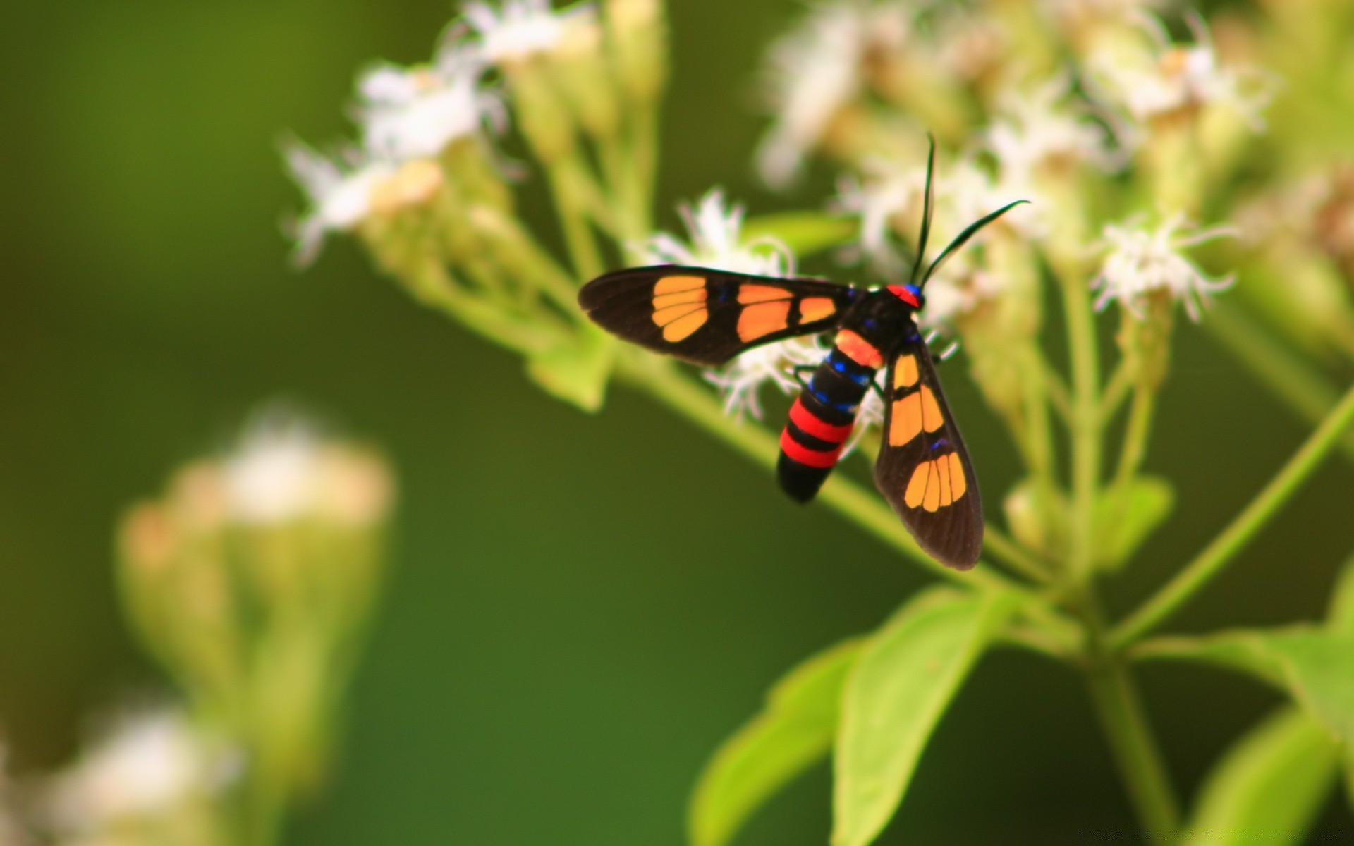 Ein Schmetterling sammelt Pollen von einer lila Blume