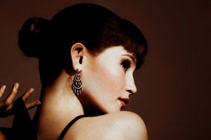 Langhaarige Brünette schaut ausdrucksstark in die Kamera