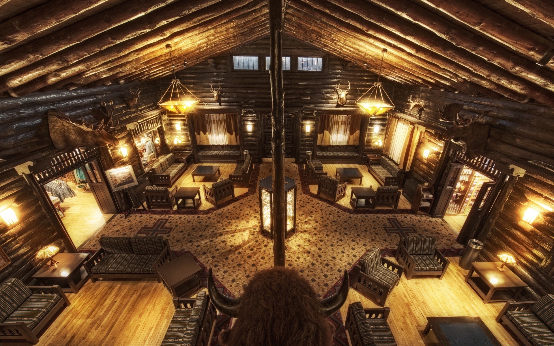 Brünette sitzt auf der couch in einem schloss, umgeben von leuchtenBrünette sitzt auf der Couch in einem Schloss, umgeben von Leuchten