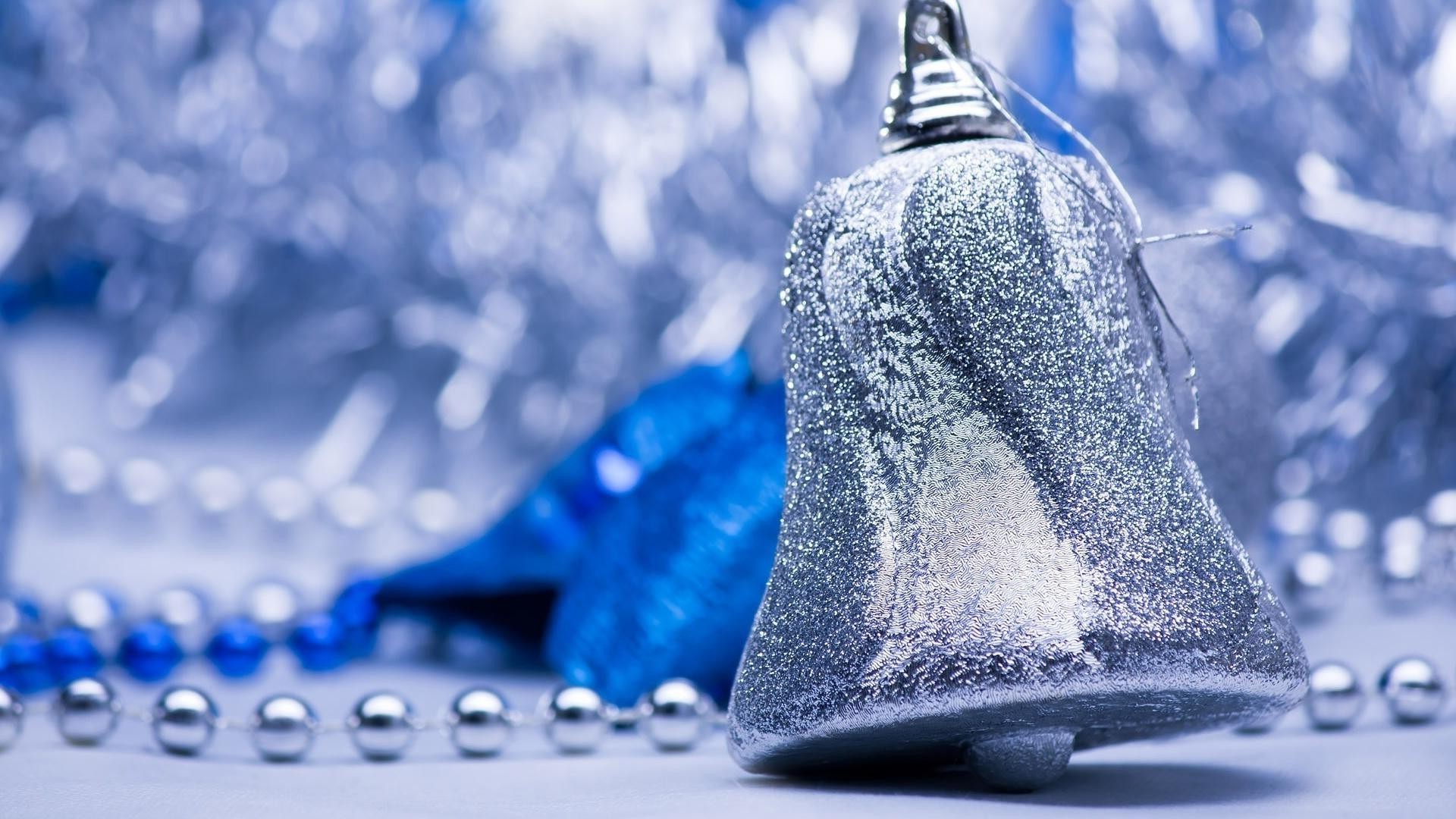Silbernes Glockenspiel des Neujahrs am Weihnachtsbaum