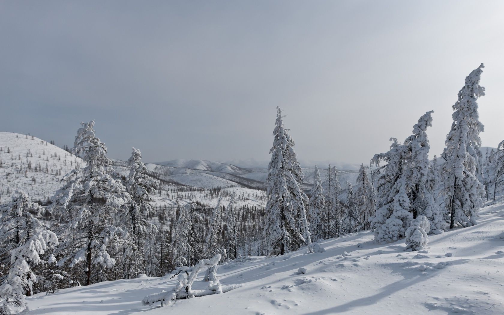 Winterhügel mit Tannen bewachsen