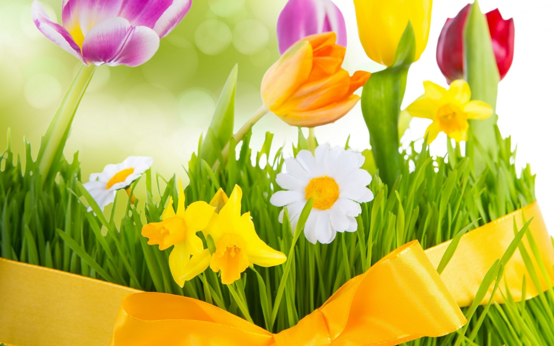 Blumenstrauß aus Tulpen, Narzissen und Gänseblümchen