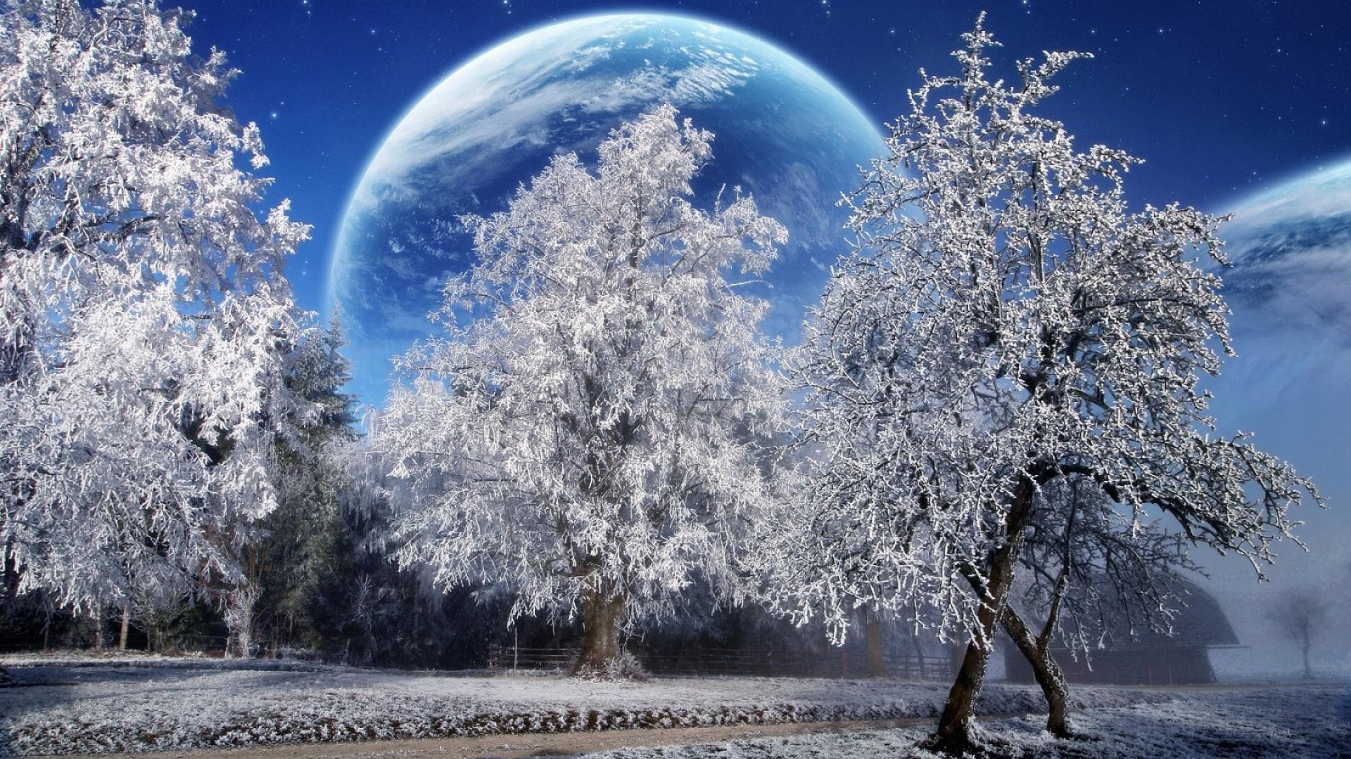 Ein kalter, frostiger Abend, ein großer Mond