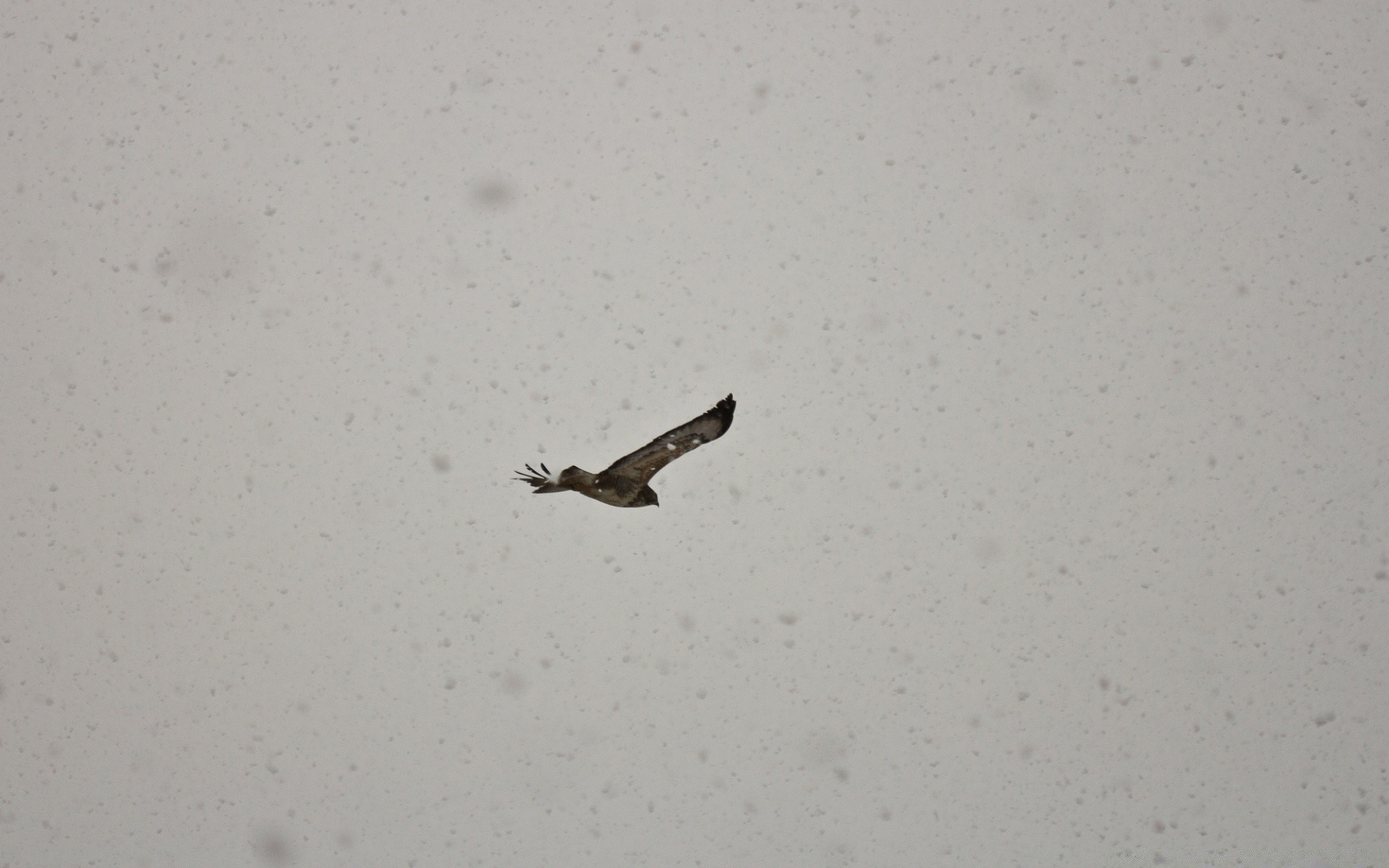 Schwarzer Vogel am grauen Himmel
