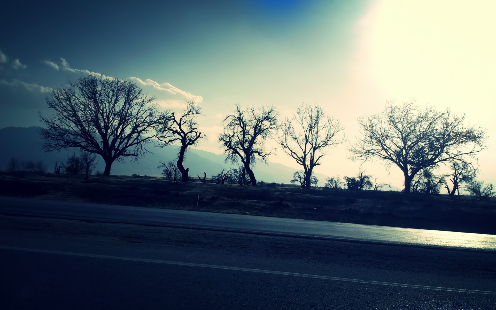 Bäume und Himmel. Die Straße. Landschaft