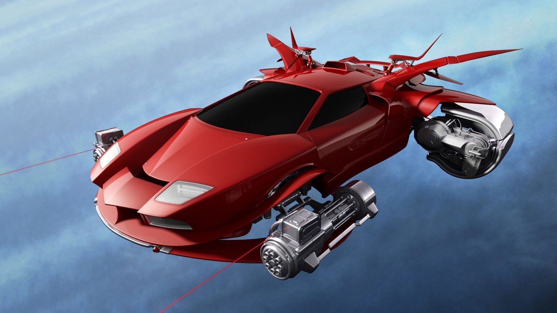 Auto und Flugzeug stehen nebeneinander auf dunklem Hintergrund