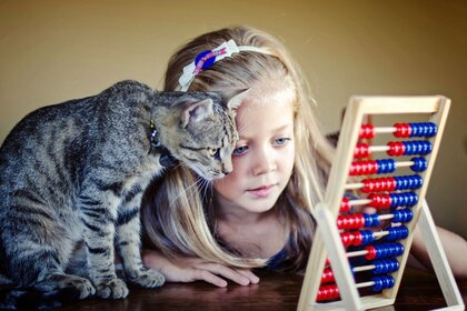 Ein mädchen mit einer katze wird von mathematikern gelöstEin Mädchen mit einer Katze wird von Mathematikern gelöst