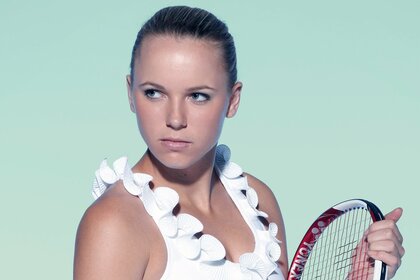 Schönes Mädchen in weißen Kleidern posiert liegend