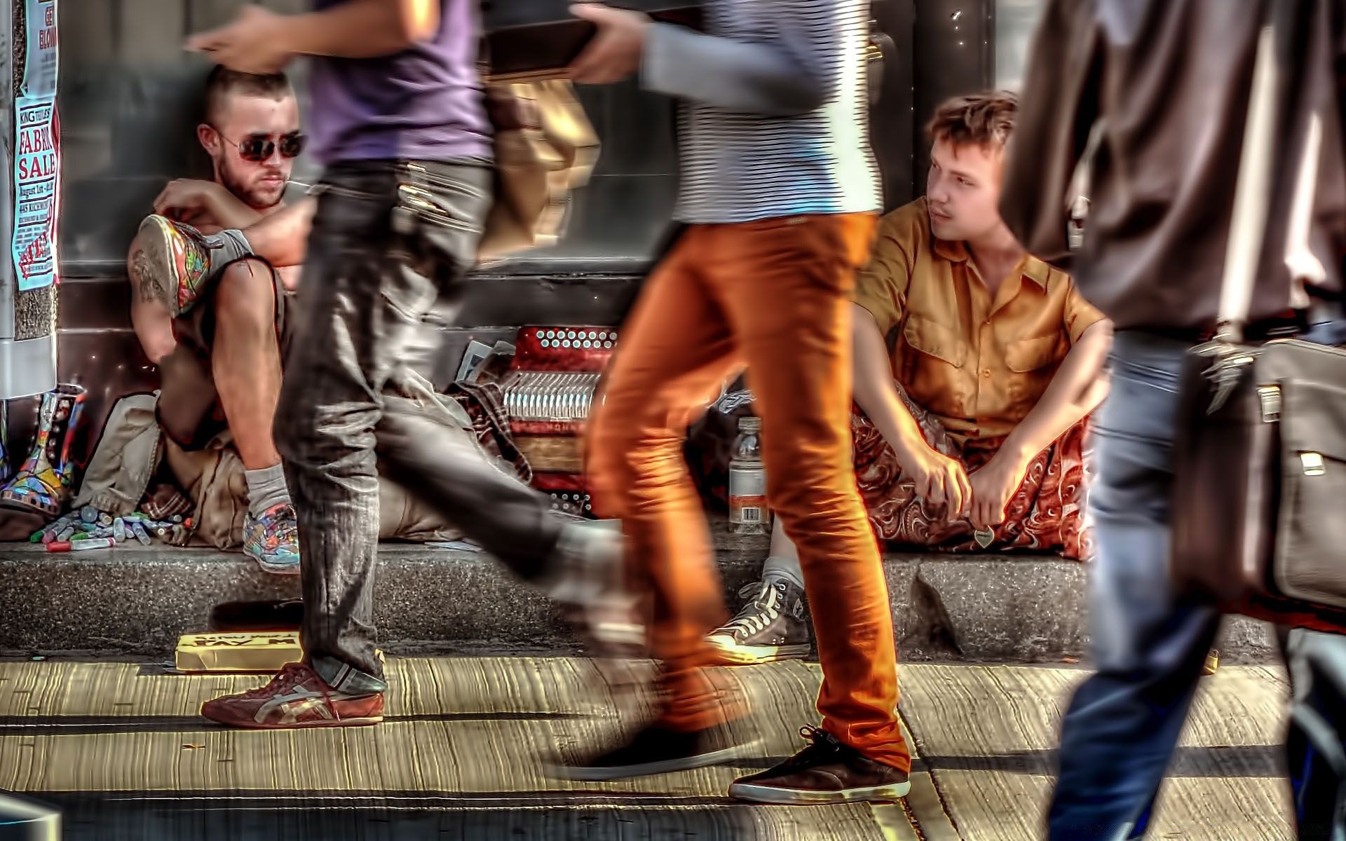 Mehrere Menschen auf der Straße haben sich zur Ruhe versammelt