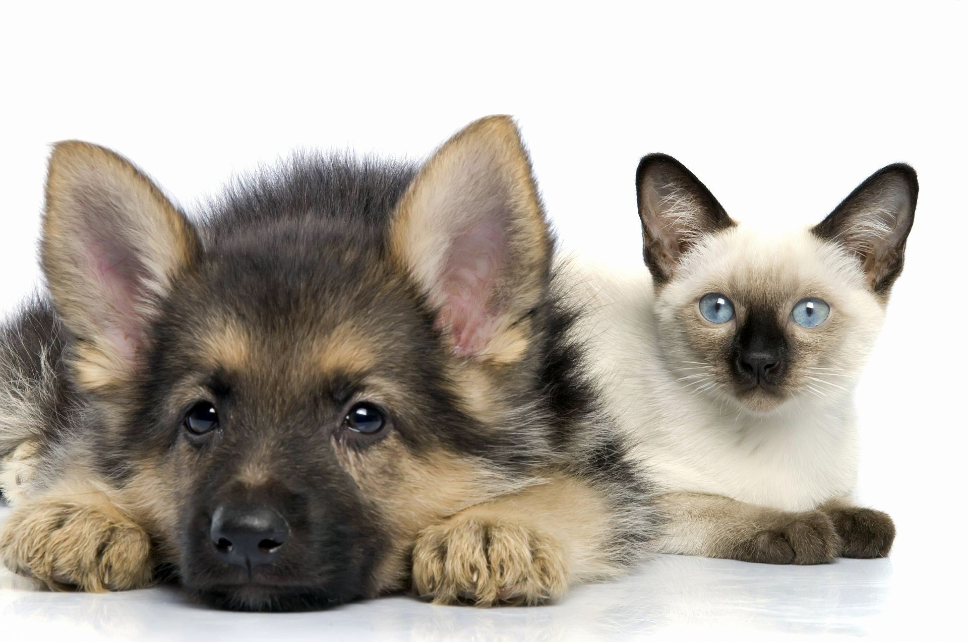 Ein deutscher Schäferhundwelpe und ein siamesisches Kätzchen