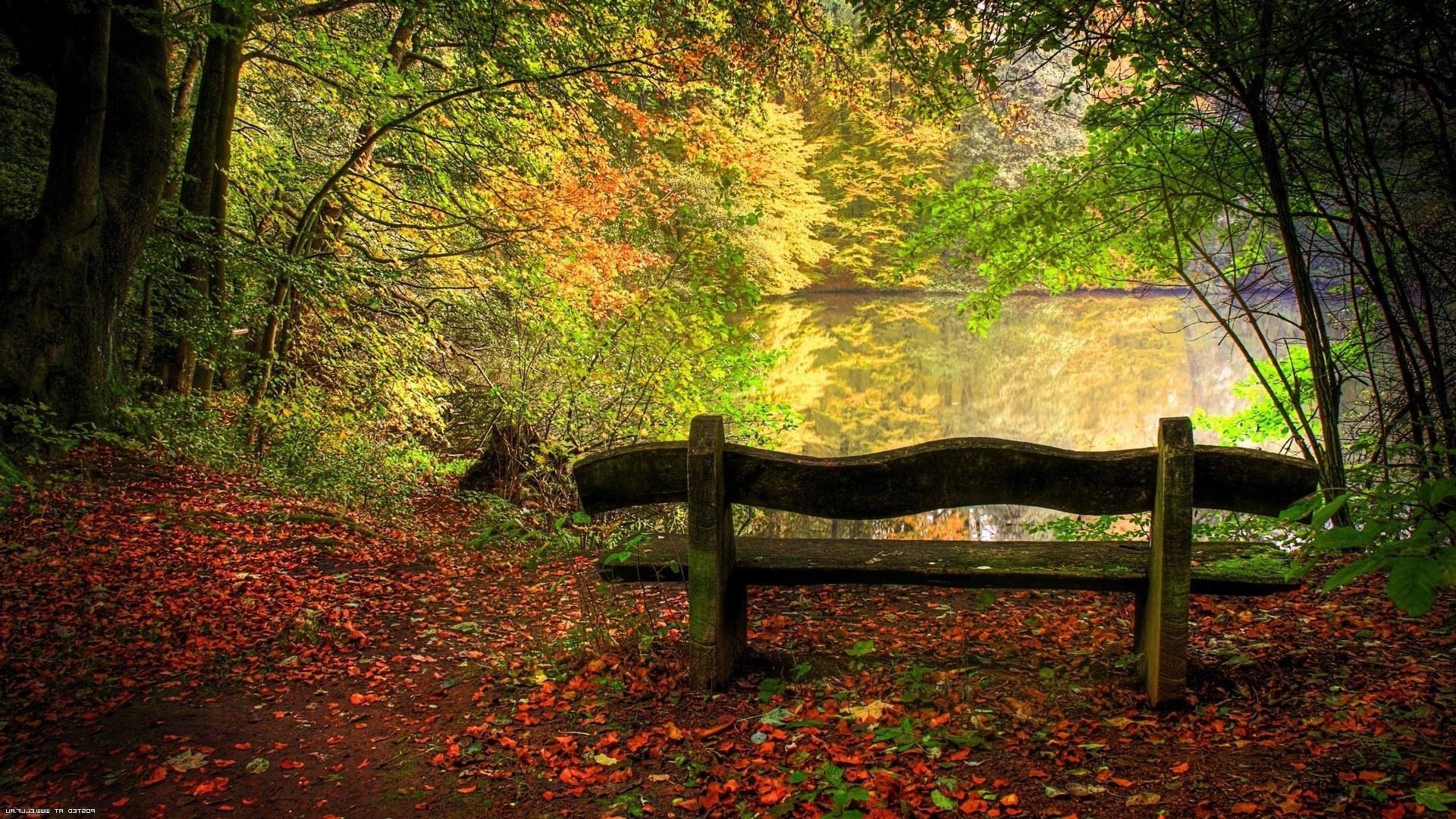 Bank im Schatten der Bäume am See