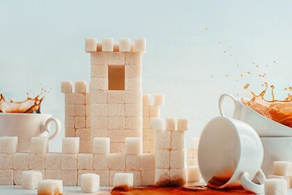 Gewürfelter Zucker und Kaffeetassen