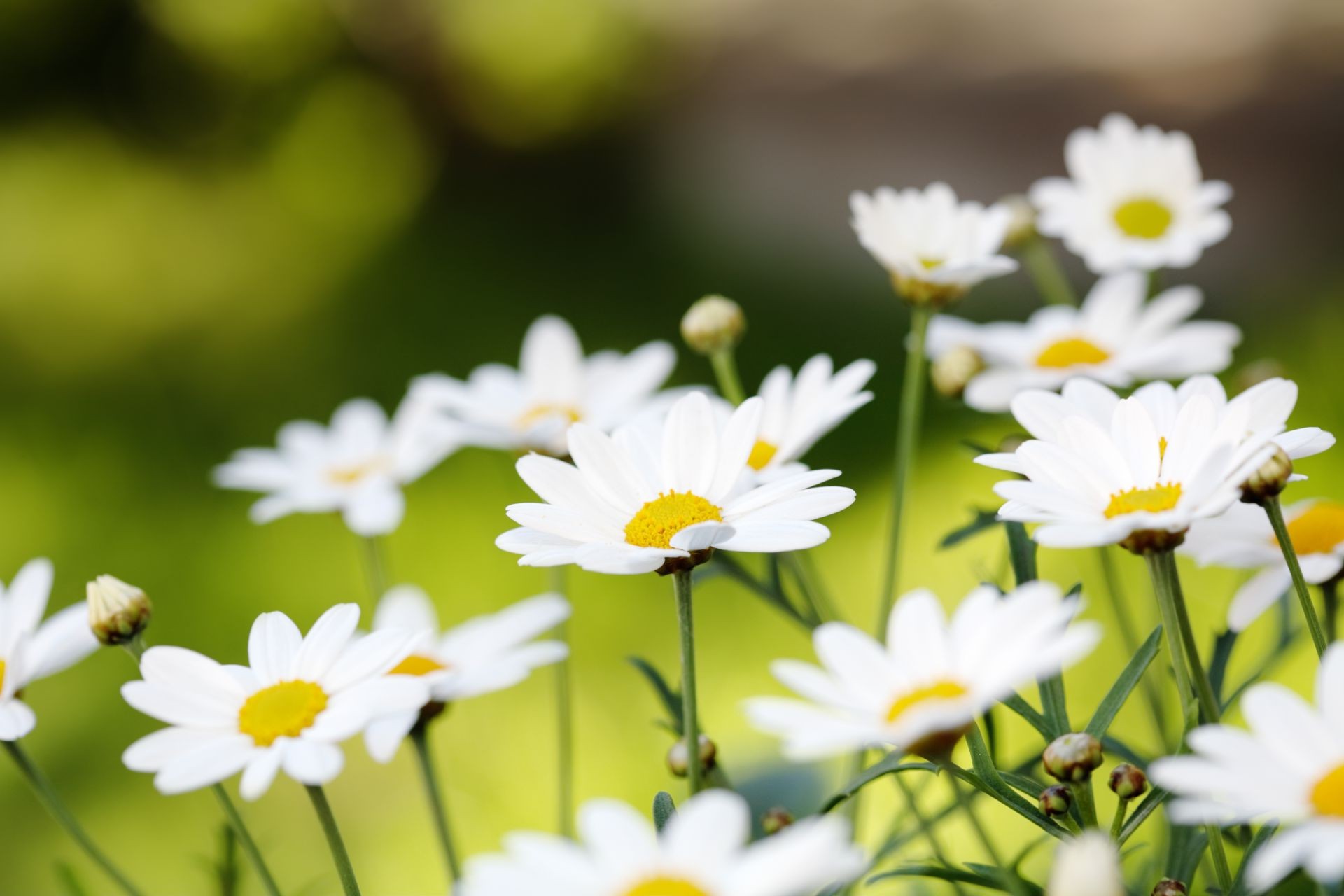 Sommer und ein ganzes Feld weißer Gänseblümchen