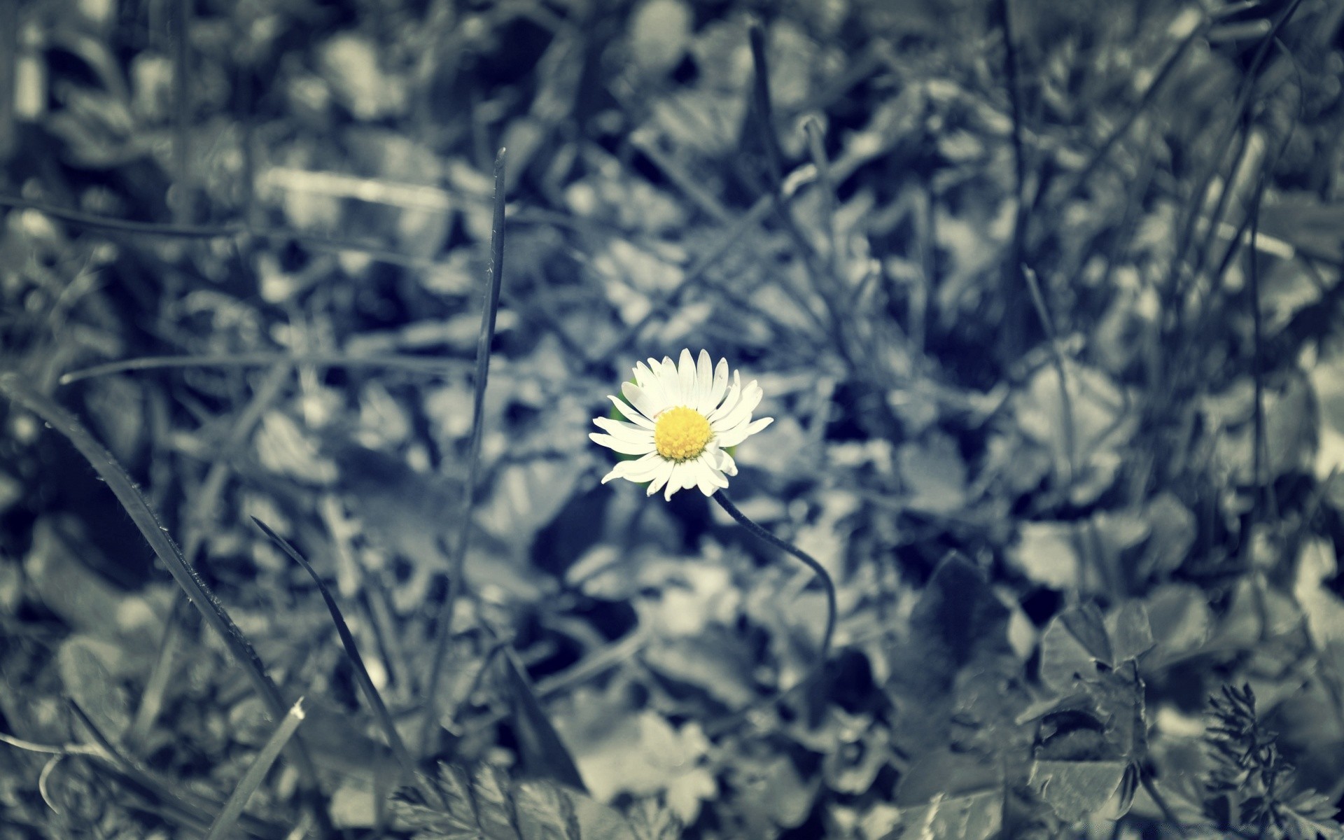 Einsame Kamille im grauen Gras