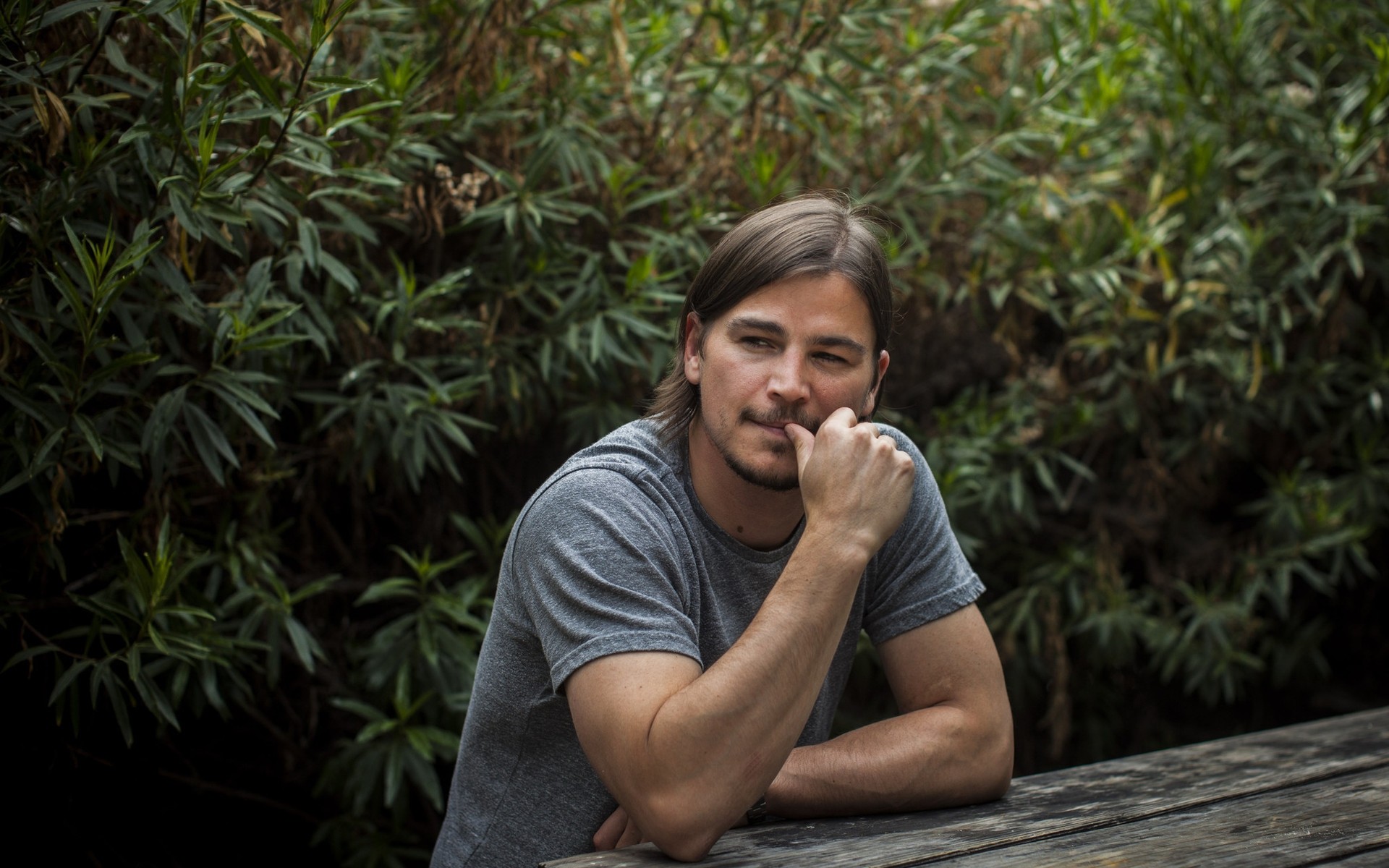 Ein Mann in einer schwarzen Jacke schaut geradeaus