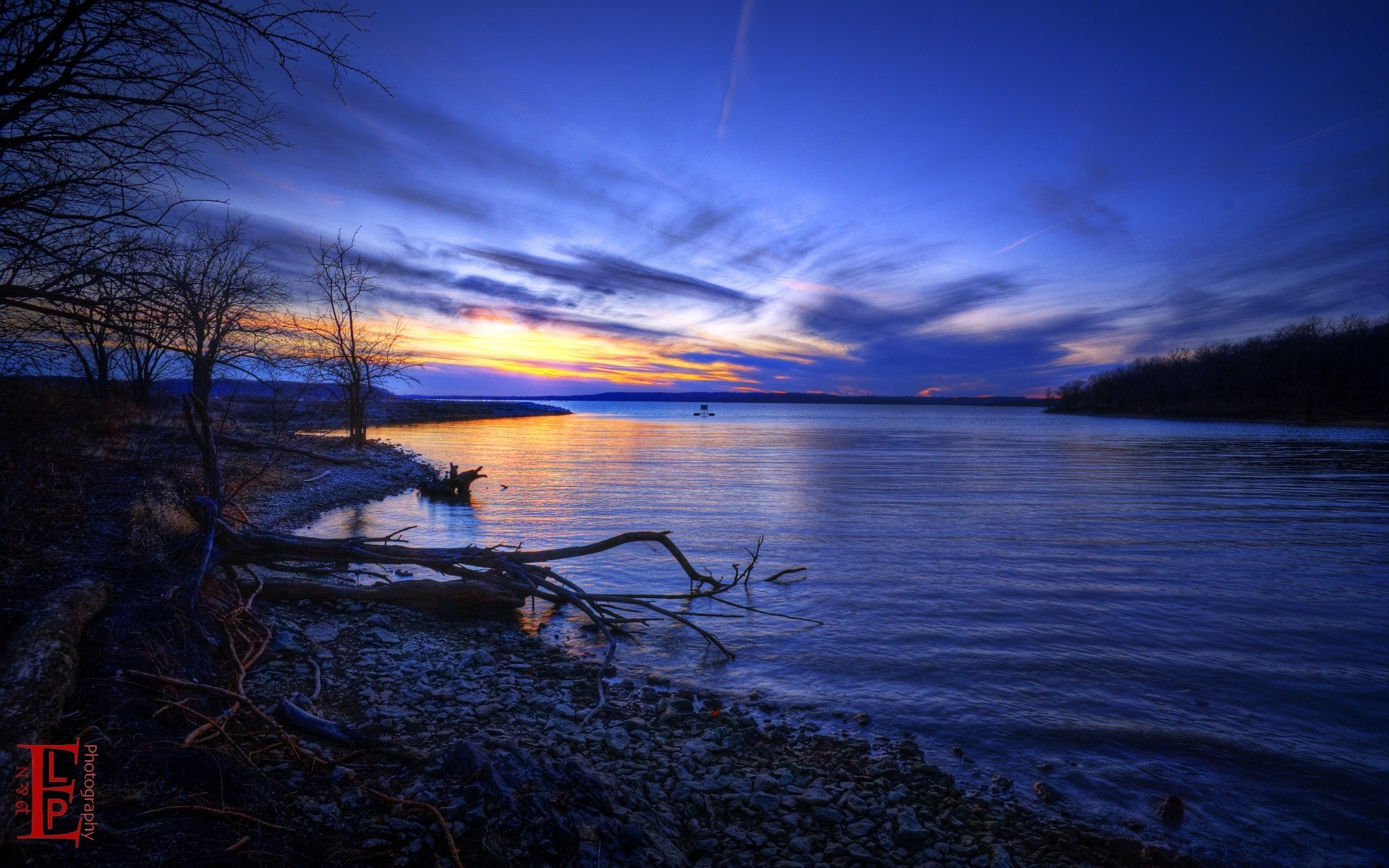 Feurige Blendung von Sonnenuntergang auf dem Wasser