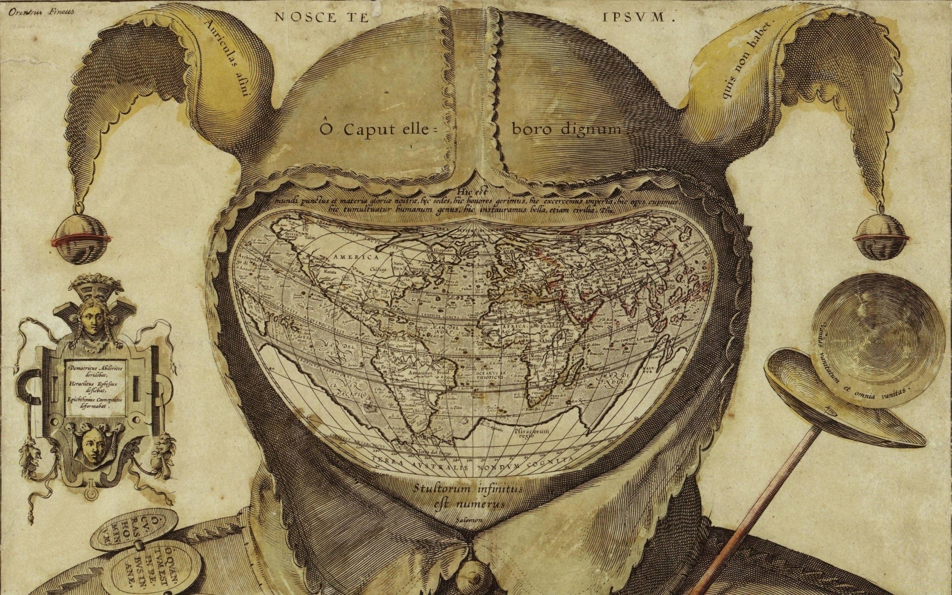 Retro Abbildung eines Kopfes mit einer Karte anstelle eines Gesichts